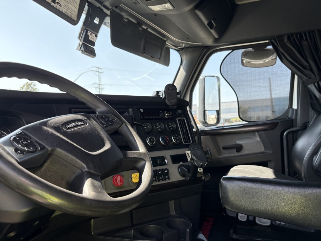 Maintenance of trailers and service schedules are managed by the platform, including tyre replacement. Drivers carry out a 21-point check of their truck at the start of every shift, with full inspections every ninety days. “Each accident cost lots of dollars,” Guillen points out. “If you have crashes you get Department of Transport visits to check records, so having cameras solved that.” 70% of problems are caused by phone usage. “We were using What’s App to message drivers, so we stopped that!” The driver self-training modules have helped, especially with the incidences of speeding. California’s HGV speed limit is 55 m.p.h., but 60 with cruise control so usage of that is encouraged.